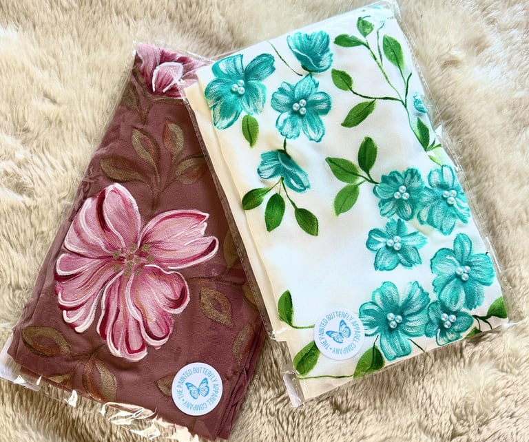 At The Painted Butterfly Apparel Company, we celebrate creativity through hand-painted hijabs and apparel, transforming fabric into unique pieces that bring color and authenticity to your wardrobe.